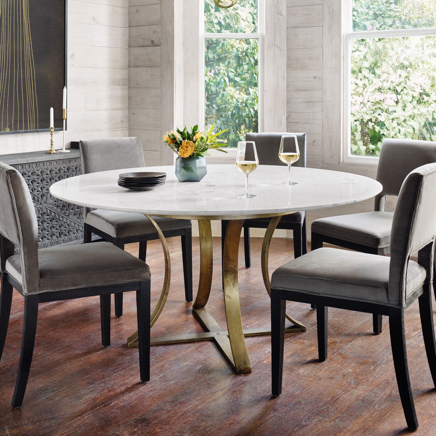 To prevent staining, the tabletop was sealed in acrylic and seats 6 persons comfortably. The parsons white marble top/brass base dining tables are crate & barrel exclusives. Calculate delivery to a different zip code. Colors for smart brass c table with white marble top. 4.4 out of 5 stars.